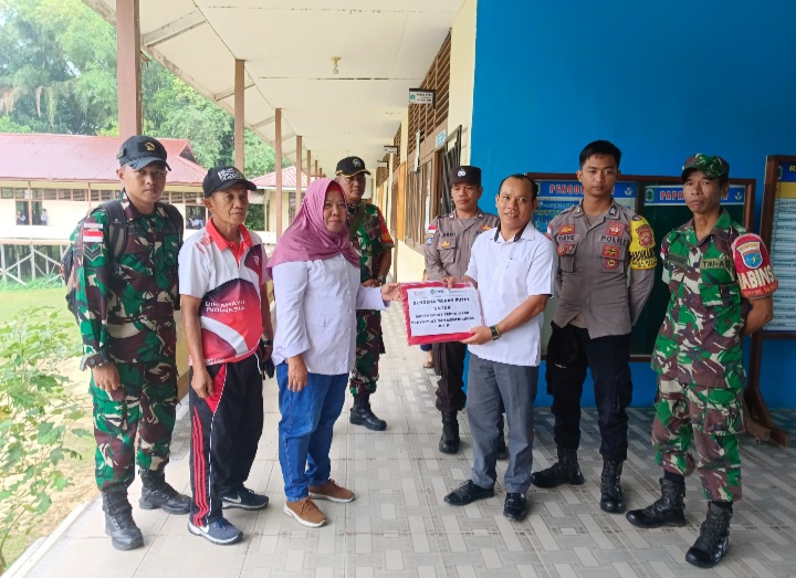 Badau - Badan Pengelola Perbatasan Daerah (BPPD) Provinsi Kalimanatan Barat bersama Satgas Pamtas RI-Malaysia Yonzipur 5/ABW membagikan bendera merah putih dalam rangka memperingati Hari Ulang Tahun (HUT) ke 79 Kemerdekaan Republik Indonesia kepada beberapa Instansi di perbatasan, Rabu (07/8/2024).