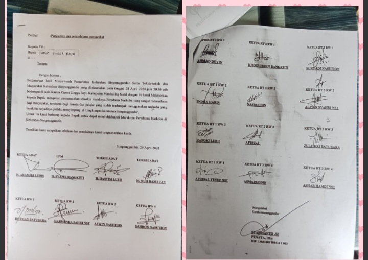 Simpang gambir - Lingga Bayu Kabupaten Mandailing Natal (Madina) Provinsi Sumatra Utara (Sumut) Pemerintah kelurahan Simpang Gambir dengan tokoh masyarakat melaksanakan musyarah dan memohon kepada Kapolsek Lingga Bayu AKP Marlon supaya menindak pelaku-pelaku narkoba, Kamis (08/08/2024).