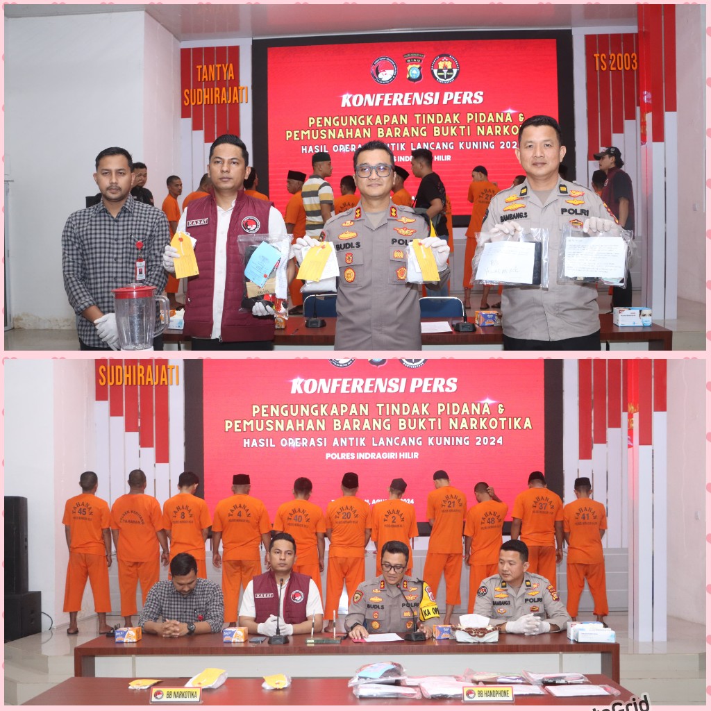 "Diharapkan dengan dilaksanakannya Konferensi pers terkait pengungkapan kasus tindak pidana dan pemusnahan barang bukti narkotika hasil Operasi Antik Lancang Kuning 2024 di wilayah hukum Polres Inhil dapat memberitahu kepada masyarakat terkait keberhasilan kami dalam mengungkap kasus yang menjadi perhatian publik serta menciptakan kondisi Kamtibmas yang kondusif," kata Kapolres Inhil AKBP Budi.