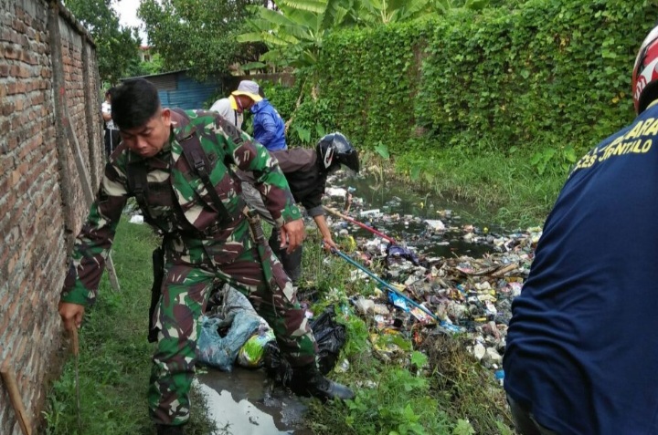 “Mari kita bersama-sama menjaga lingkungan dengan tidak membuang sampah di sembarang tempat sehingga lingkungan tidak tercemar dan akan menimbulkan bencana banjir,” tegas Serka Samsir.
