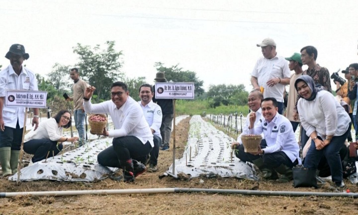 Deliserdang - Pemerintah Provinsi (Pemprov) Sumatera Utara (Sumut) berkomitmen untuk terus menjaga kedaulatan pangan di Sumut. Hal tersebut disampaikan Penjabat (Pj) Gubernur Sumut Agus Fatoni saat mendampingi kunjungan kerja Wakil Menteri Pertanian (Wamentan) Sudaryono meluncurkan Food Estate Mini, sekaligus menanam cabai merah, bawang merah dan jagung perdana di Desa Sena, Deliserdang, Minggu (11/8/2024).
