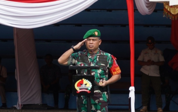 Danrem 032/Wbr Bigjen TNI Wahyu Eko Purnomo selaku Dankolakops Pampilkada di wilayah Sumatera Barat memimpin langsung apel gelar pasukan operasi pengamanan Pilkada serentak dilapangan RTH Imam Bonjol Jln. Sudirman Padang Sumatera Barat, Jumat (16/8/2024).