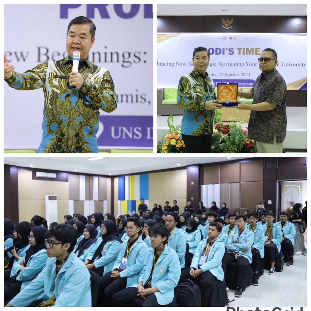 Surakarta - Direktur Jenderal Kependudukan dan Pencatatan Sipil (Dukcapil) Kementerian Dalam Negeri, Dr. Teguh Setyabudi, M.Pd. menyampaikan kuliah umum bertema "Membangun Sumber Daya Manusia (SDM) Unggul dan Berkarakter melalui Tata Kelola Kependudukan yang Baik" pada kegiatan Pengenalan Mahasiswa Baru Program Studi D-IV Demografi dan Pencatatan Sipil, Sekolah Vokasi Universitas Sebelas Maret (UNS). Acara ini juga dihadiri oleh Sekretaris Dinas Dukcapil Kota Surakarta, Dekan Sekolah Vokasi UNS, serta Kepala Program Studi D-IV Demografi dan Pencatatan Sipil, bertempat di Ruang Indraprasta UNS Inn, Kamis (22/08/2024).