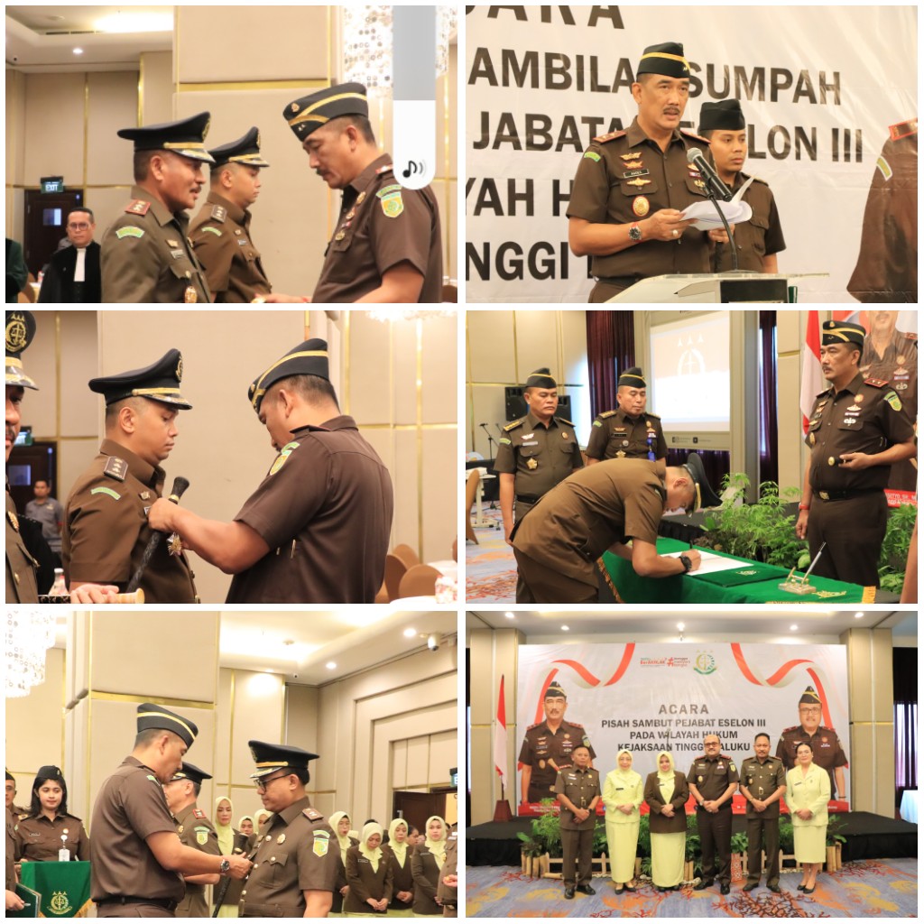 Pelantikan dan pengambilan sumpah jabatan pada Pejabat III diikuti dengan penyematan tanda jabatan dan penyerahan tongkat komando kepada Kepala Kejaksaan Negeri Buru Adrianus Notanubun, S.H dan Kepala Kejaksaan Negeri Maluku Tenggara Fik Fik Zulrofik, S.H.,M.H, dilanjutkan dengan sambutan Kepala Kejaksaan Tinggi Maluku yang intinya agar para Pejabat yang dilantik dan disumpah dapat melaksanakan tugas dan kewajiban serta tanggung jawabnya dalam sebuah Jabatan, perlu disadari bahwa semua itu harus dimaknai sebagai Sumpah, Ikrar serta janji bukan hanya kepada diri sendiri melainkan juga kepada orang lain, Masyarakat, Bangsa terlebih kepada Tuhan Yang Maha Esa.