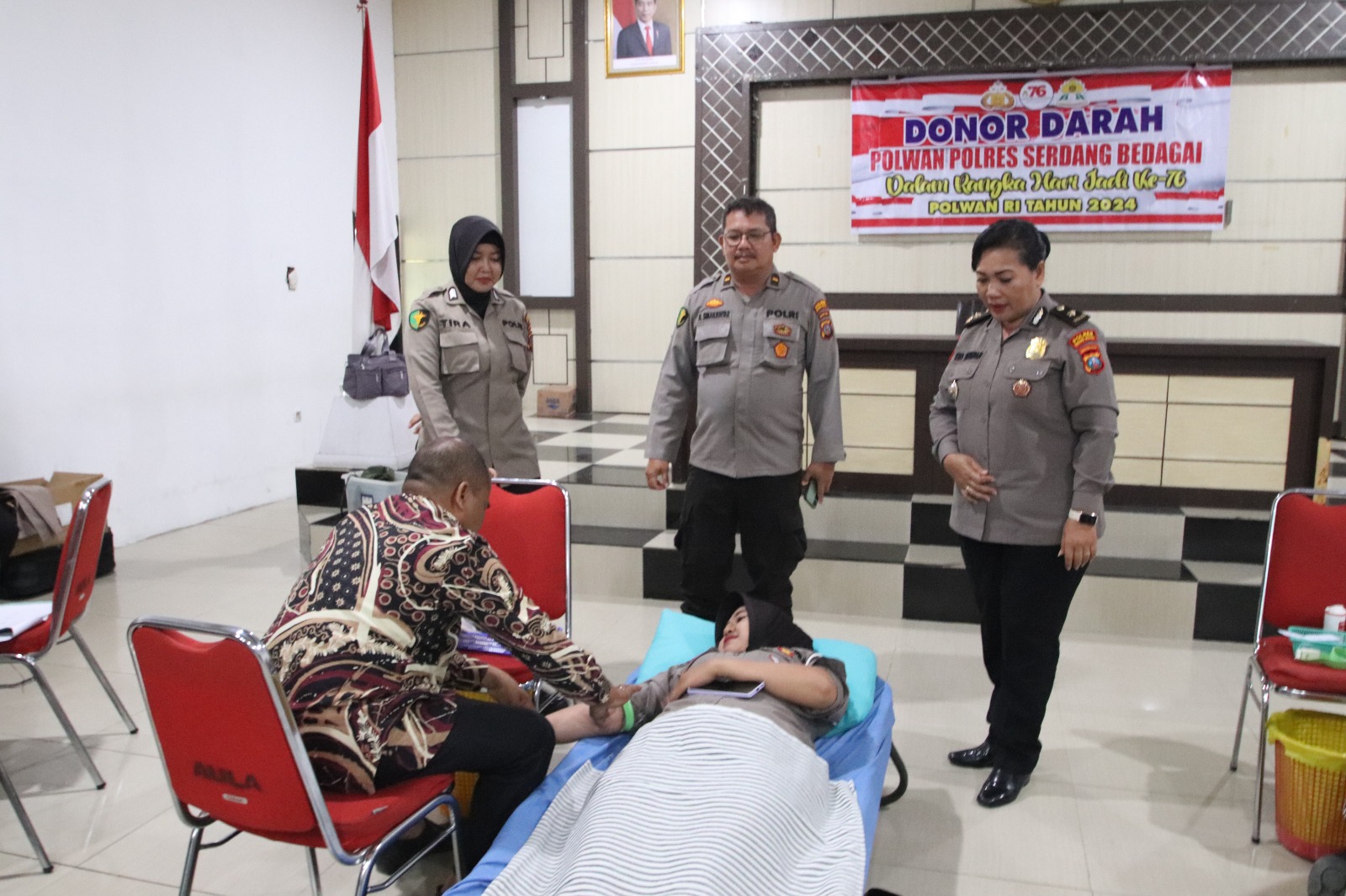 Memperingati Hari Jadi Ke-76 Polwan RI, Polres Serdang Bedagai menggelar kegiatan donor darah, pada Kamis (29/08/2024).