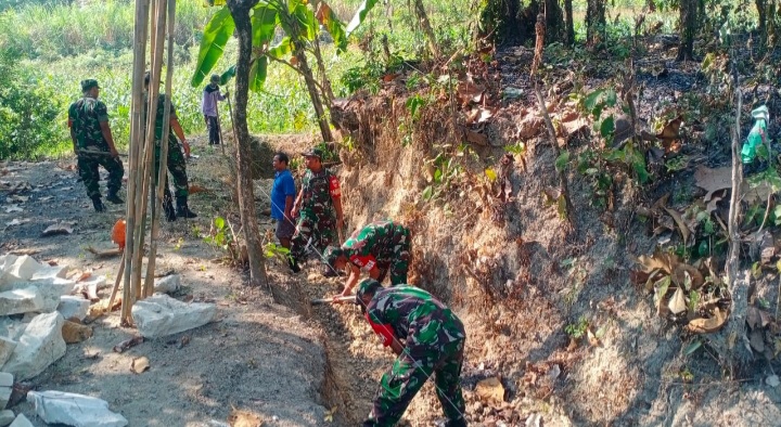 Dengan peralatan sederhana, anggota Koramil dan warga bergotong royong membersihkan material lama dan membangun talud baru. Mereka bekerja dengan semangat dan penuh kekompakan, saling membantu dan menyemangati satu sama lain.