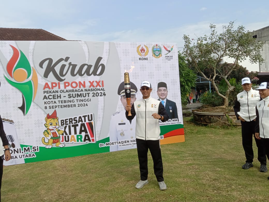 Penerimaan Api Obor Pekan Olahraga Nasional (PON) XXI Aceh - Sumut Tahun 2024 wilayah Sumatera Utara di Kota Tebing Tinggi dilakukan tepatnya di Simpang Medan Kota Tebing Tinggi dan diterima oleh Sekda Kota Tebing Tinggi H. Kamlan Mursyid, SH., M.M di Halaman Pemko Tebing Tinggi, selanjutnya pelaksanaan upacara dipimpin Pj Wali Kota Tebing Tinggi Dr Moettaqien Hasrimi, S.STP, M.Si pada pukul 07.30 WIB.