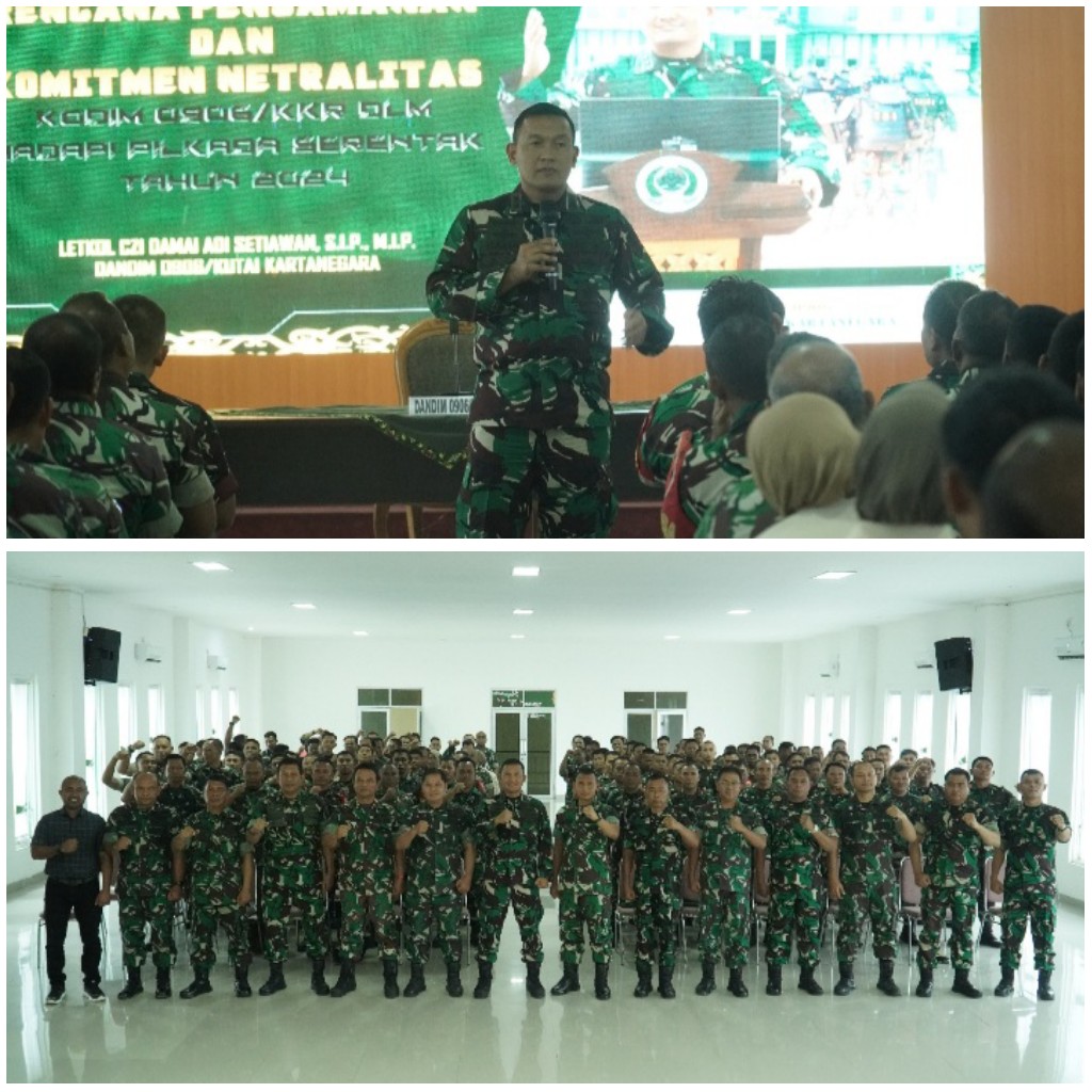 Dalam pengarahannya Dandim 0906/ Kkr Letkol Czi Damai Adi Setiawan menyampaikan kepada seluruh prajurit agar selalu menjunjung tinggi netralitas TNI Pada pelaksanaan Pilkada yang sebentar lagi akan dilaksanakan, di mana netralitas TNI merupakan harga mati yang harus dipegang oleh setiap prajurit.