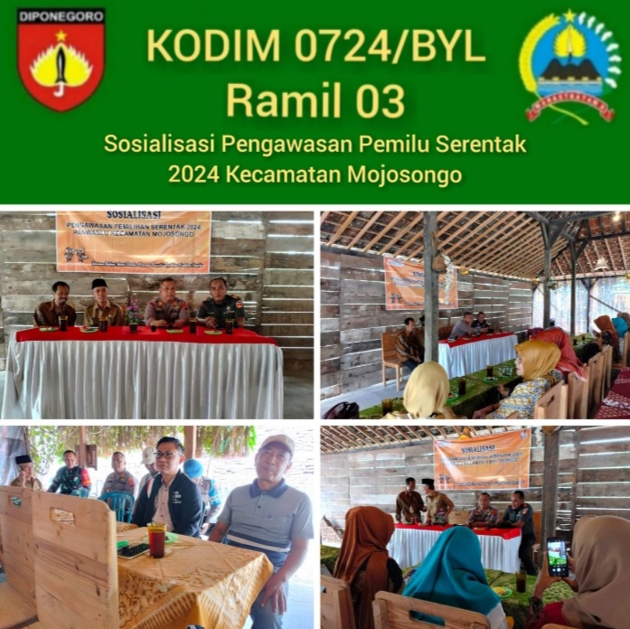 Danramil 03/Mojosongo Kapten Inf Sri Suraya mengatakan Sosialisasi Pengawasan pemilu Pemilihan ini bertujuan untuk meningkatkan pengetahuan dan wawasan masyarakat terkait kepemiluan guna meningkatkan partisipasi masyarakat pada Pemilu/Pemilihan yang akan datang.