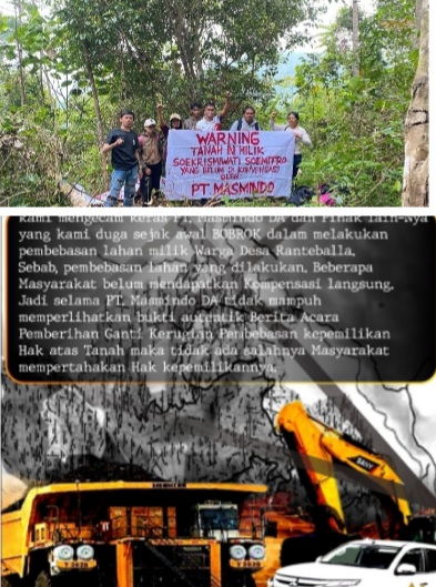 “Kami mengecam keras PT. Masmindo dan pihak lainnya yang kami duga sejak awal bobrok dalam melakukan pembebasan lahan milik warga Desa Ranteballa. Sebab, pembebasan lahan yang dilakukan oleh PT. MDA terhadap lahan masyarakat belum mendapatkan kompensasi langsung kepada pemilik yang sebenarnya. Jadi selama PT. Masmindo tidak mampuh memperlihatkan bukti autentik Berita Acara pemberian Ganti Kerugian Pembebasan Kepemilikan Hak Atas Tanah, maka tidak ada salahnya masyarakat mempertahankan hak kepemilikannya,” ujarnya.