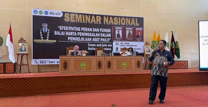 Seminar Nasional bertajuk Efektivitas Peran dan Fungsi BHP Dalam Pengelolan Aset Pailit di Universitas Palangkaraya, Selasa (17/9/2024).