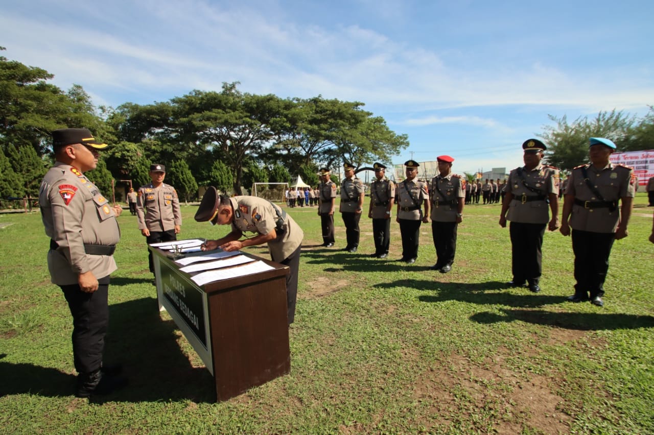 Sergai - Kapolres Serdang Bedagai (Sergai) AKBP. Jhon Sitepu, S.IK., MH pimpin upacara Serah Terima Jabatan (Sertijab) pejabat utama Polres Serdang Bedagai, Kamis (19/09/2024) di lapangan Mapolres Serdang Bedagai.