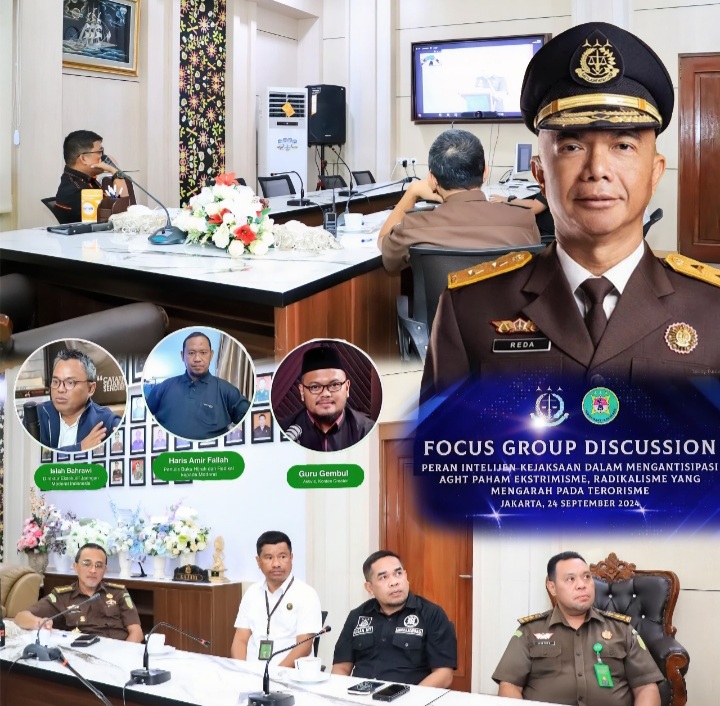 Kegiatan FGD yang diselenggarakan di Hotel Sultan Jakarta Selatan oleh Kejaksaan Agung Republik Indonesia, dibuka oleh Jaksa Agung Muda Intelijen Prof. DR. Reda Manthovani, S.H.,L.L.M dengan menghadirkan Narasumber yakni Islah Bahrawi (Direktur Eksekutif Jaringan Moderat Indonesia), Haris Amir Fallah (Penulis Buku Hijrah dan Radikal kepada Moderat), Guru Gembul (Aktifis, Konten Creator).