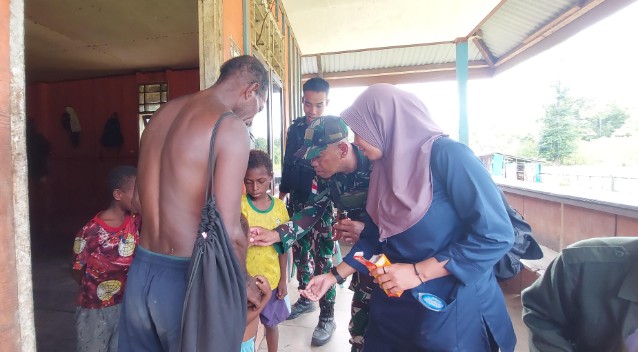 Mansel - Pos Kout Tahota Satgas Pamtas RI-PNG Yonif 642/Kps Wil. Papua Barat bantu kesulitan masyarakat yang berada diwilayah Pos penugasan serta memberikan pelayanan kesehatan dan Posyandu kepada masyarakat. (Selasa, 24/09/2024).