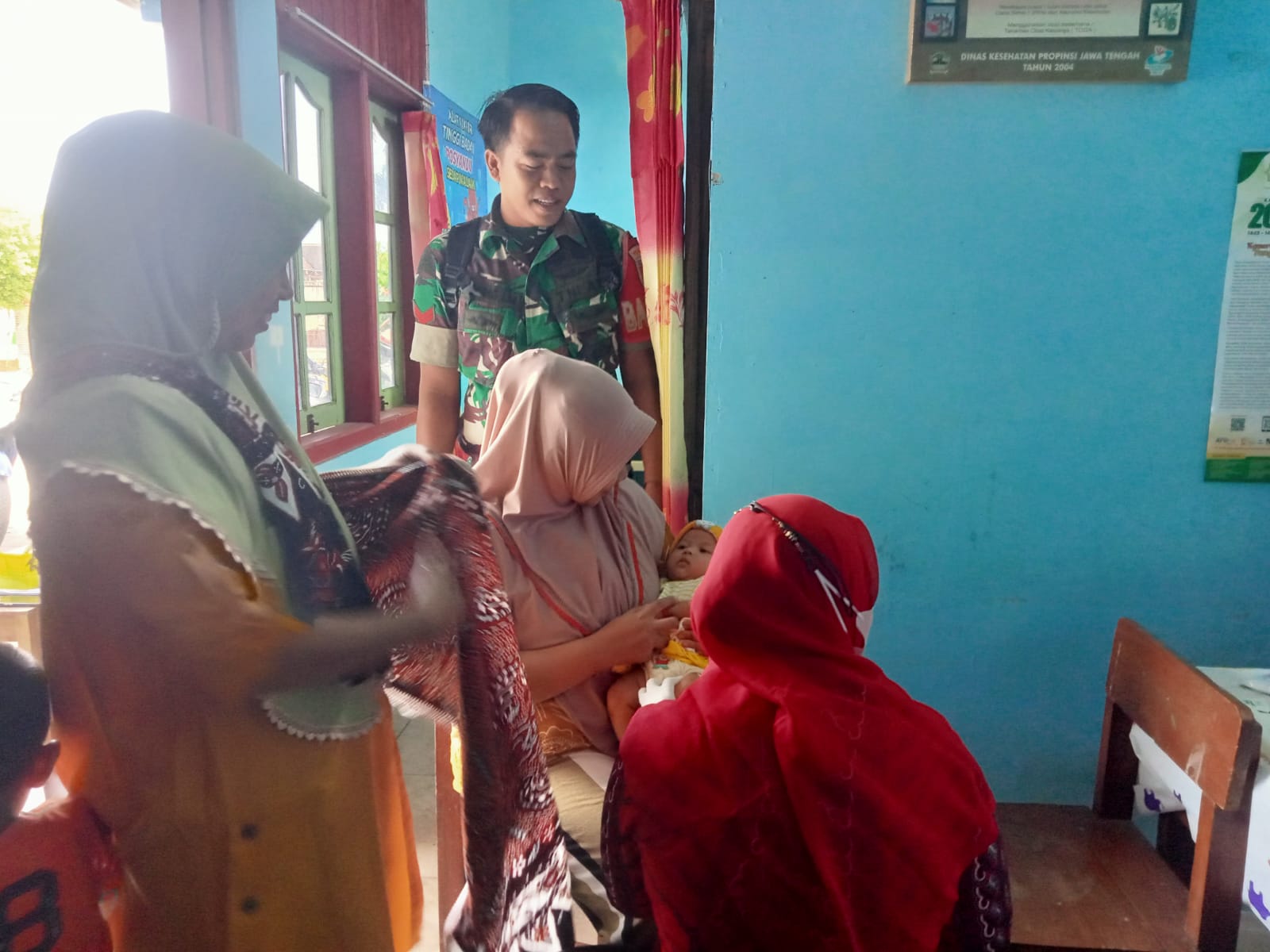 Pagi ini Senin ( 30/09/2024 ) Koptu Agung Leksono Babinsa Kel.Ngembat padas Koramil 15/Gemolong Kodim 0725/Sragen melaksanakan kegiatan pendampingan Pelayanan Posyandu di Kel. Ngembat Padas. Pada kegiatan posyandu yang diselenggarakan oleh bidan Desa dan kader posyandu meliputi penimbangan balita, pengukuran tinggi badan balita, pengukuran lingkar kepala, evaluasi tumbuh kembang, serta penyuluhan dan konseling tumbuh kembang, imunisasi, pemberian makanan menu saji sehat susu kacang ijo dan agar-agar serta pemberian vitamin A untuk balita serta pemeriksaan ibu hamil.