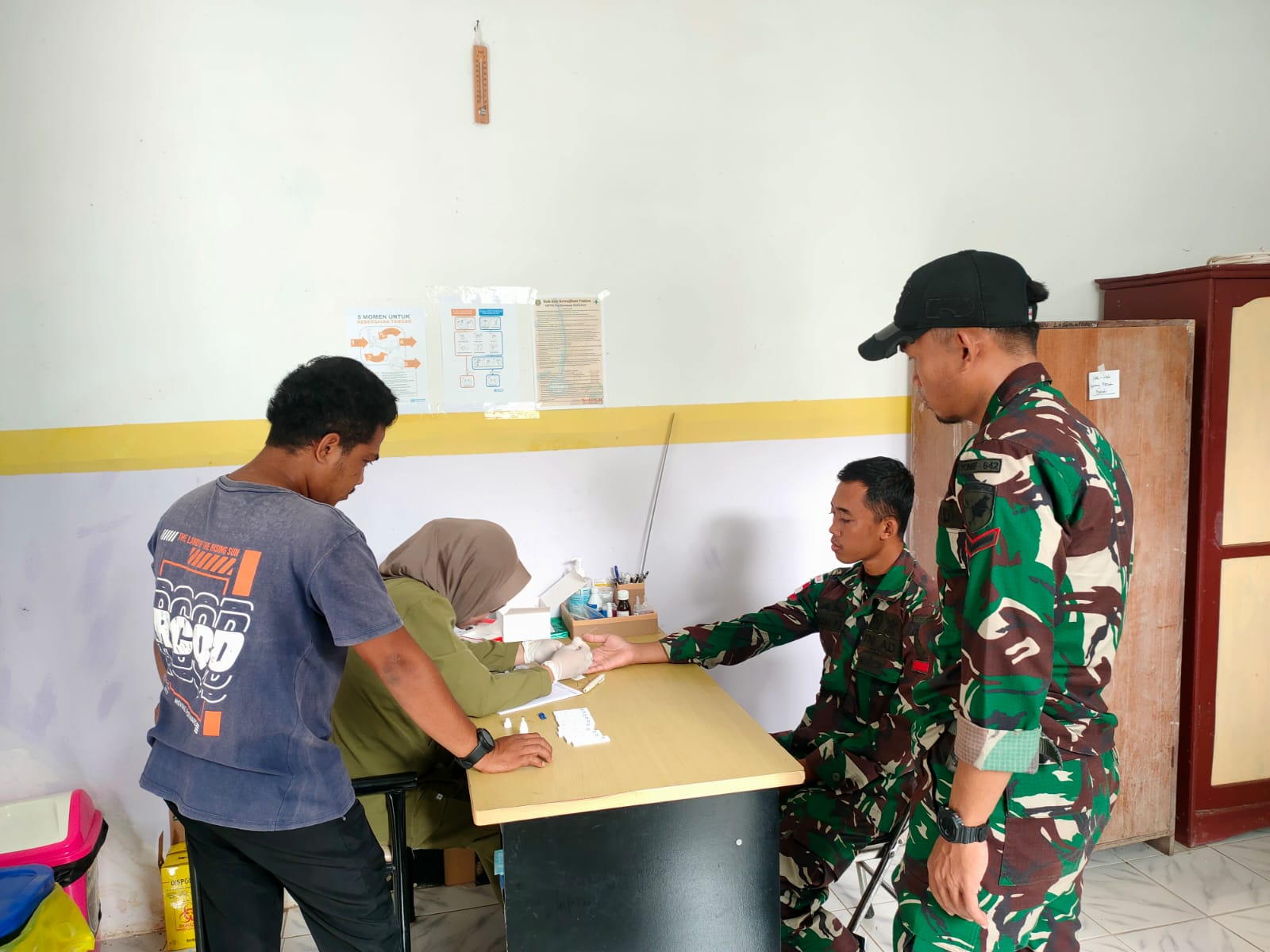 Pemeriksaan kesehatan dilakukan guna mengantisipasi adanya penyakit malaria disaat para prajurit melaksanakan penugasan. Pemeriksaan kesehatan tersebut berupa pengambilan sampel darah.