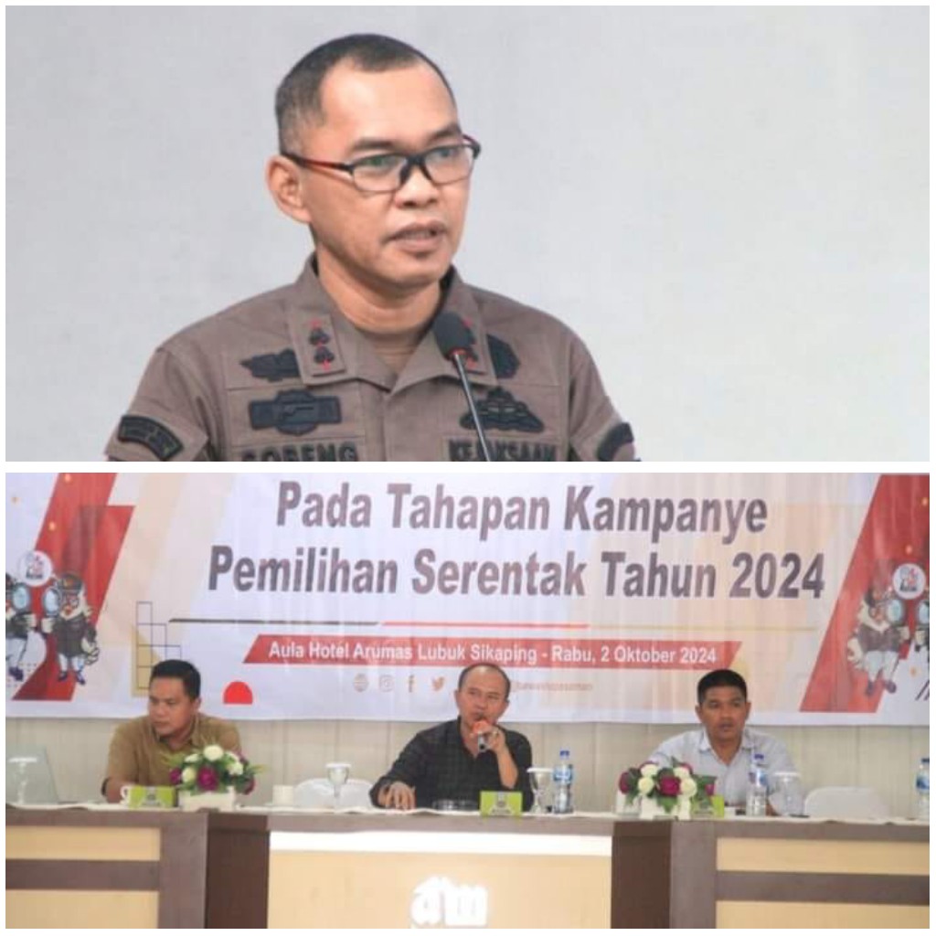 Hal itu disampaikan Pembina Sentra Penegakan hukum terpadu (Gakumdu) Kabupaten Pasaman, Sobeng Suradal, dalam gelaran acara Bimbingan Teknis (Bimtek) Menjaga Netralitas ASN, TNI/Polri pada tahapan kampanye Pemilihan Serentak Tahun 2024, Rabu (02/10) di aula salah satu hotel di Lubuk Sikaping.