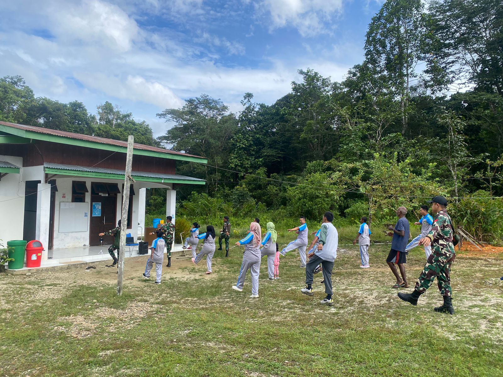 Teluk Bintuni - Pos Jagiro Satgas Pamtas RI - PNG Kewilayahan Papua Barat Yonif 642/Kps melaksanakan kegiatan Senam bersama dengan dinas kesehatan dan warga Kampung Jagiro, Distrik Moskona Selatan, Kabupaten Teluk Bintuni, Provinsi Papua Barat, Jumat (04/10/2024).6