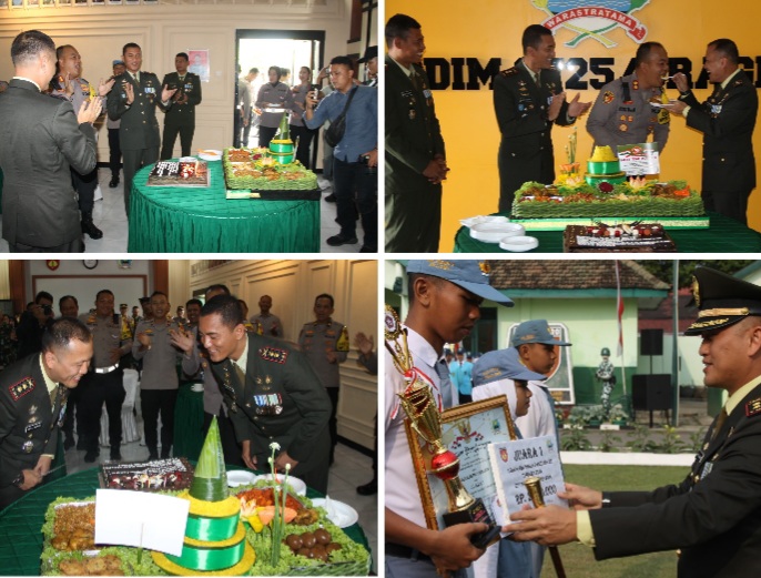 Selepas upacara tiba tiba masuk puluhan mobil dari Polres Sragen yang dipimpin oleh AKBP Petrus Parningotan Silalahi, SH.SIK.MH Kapolres Sragen dengan membawa tumpeng dan kue sebagai hadiah Polres Sragen untuk TNI yang hari ini berulang tahun ke-79.