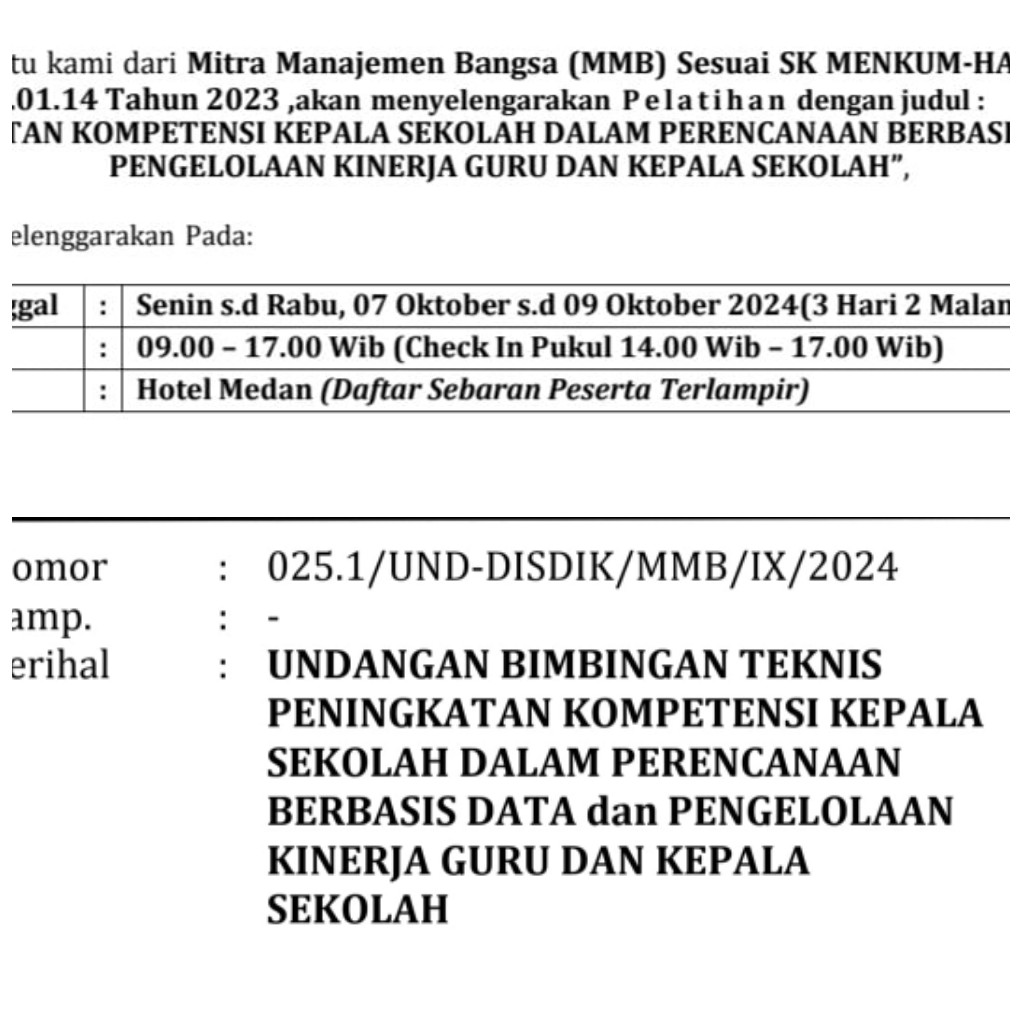 " Sudah digelar di Madina bimtek kurikulum merdeka pada beberapa titik dan kini kembali digelar diluar kota yang juga melibatkan para kepala sekolah dengan bimtek peningkatan kompetensi kepala sekolah (Kasek) dalam perencanaan berbasis data dan pengelolaan kinerja guru dan kasek dengan anggaran yang bervariasi yakni sekolah dengan murid 200 kebawah ditarif 3,5 juta rupiah dengan diikuti 1 peserta, kemudian Sekolah dengan murid 200 ke atas ditarif 7 juta rupiah dengan diikuti 2 peserta selanjutnya sekolah dengan murid 500 ke atas ditarif 14 juta rupiah dengan 3 peserta. Agenda digelar selama 3 hari (07-09 Oktober 2024) di hotel yang berbeda meliputi hotel Danau Toba Medan, Hotel Antares Medan dan Hotel Madani Medan" jelas Hamsar.