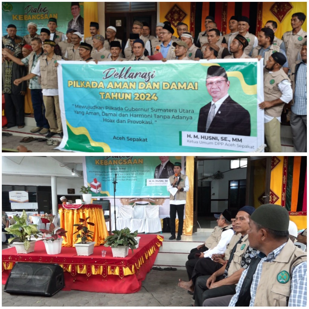 Adapun pernyataan sikap Aceh Sepakat pada deklarasi yang dipimpin langsung oleh Husni adalah sebagai berikut: 1. Mendukung penuh terlaksananya Pilkada Gubernur Sumatera Utara tahun 2024 dilaksanakan secara aman, damai dan harmoni, 2. Mengajak segenap komponen masyarakat Sumatera Utara khususnya masyarakat Aceh yang ada di Sumatera Utara untuk turut mensukseskan Pilkada Gubernur Sumatera Utara yang aman dan damai. 3. Menolak secara tegas segala bentuk provokasi pada pelaksanaan Pilkada Gubernur Sumatera Utara tahun 2024 yang dapat memicu dan mengganggu keamanan bangsa dan bernegara 4. Menolak secara tegas segala bentuk berita hoax dan ujaran kebencian yang dapat mengganggu jalannya Pilkada Gubernur Sumatera Utara tahun 2024. 5. Berkomitmen untuk menjaga kondusifitas dan stabilitas Kamtibmas di wilayah Sumatera Utara.