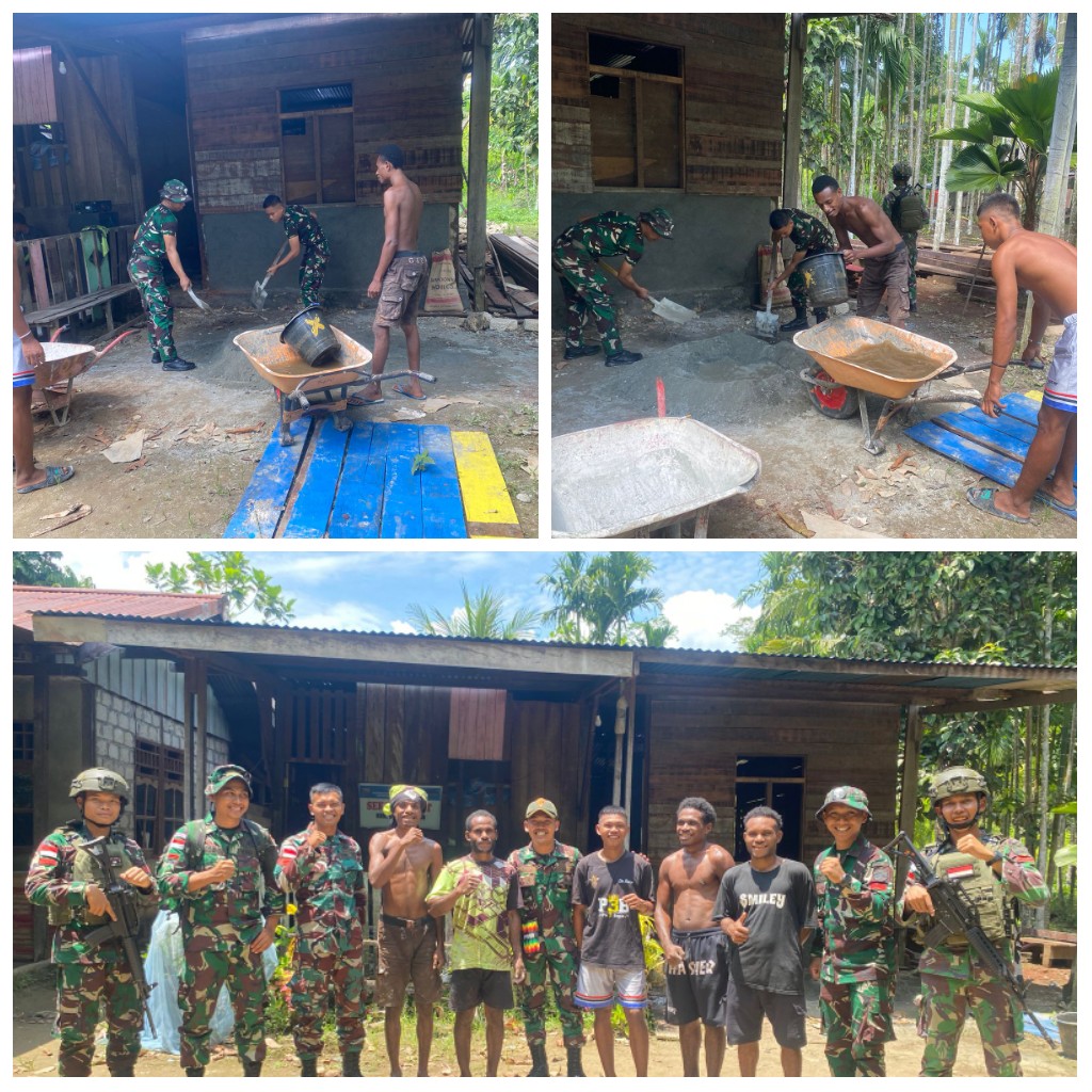 Kegiatan membantu pembangunan rumah warga di Papua seperti ini adalah salah satu wujud implementasi kepedulian dari Satgas Yonif 131/BRS dalam mengatasi kesulitan rakyat disekeliling pos.
