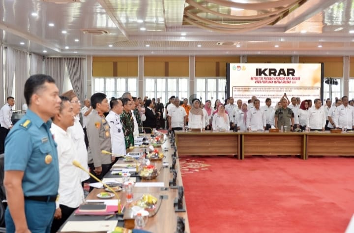 Pj. Gubernur Sumut Agus Fatoni beserta Forkopimda Sumut melakukan Deklarasi Netralitas ASN Se-Sumut sekaligus memimpin Rakor Pilkada di Aula Tengku Rizal Nurdin Jalan Sudirman Kota Medan, Rabu (23/10/2024).