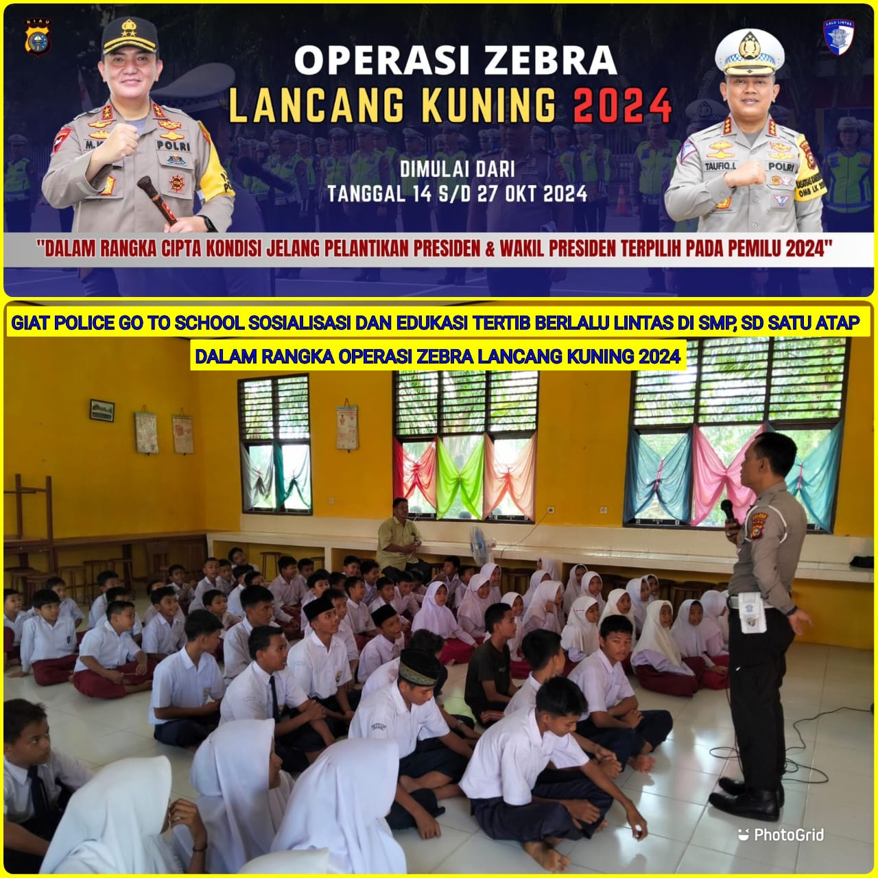 Kuansing - Sat Lantas Polres Kuansing melaksanakan kegiatan Police Goes to School Dalam rangka Operasi Zebra Lancang Kuning 2024, yang bertujuan untuk memberikan sosialisasi dan edukasi tentang keselamatan berkendara kepada siswa-siswi tingkat Sekolah Menengah Pertama (SMP) dan Sekolah Dasar (SD) Satu Atap. Kegiatan ini dilaksanakan pada hari Kamis (24/10/2024), mulai pukul 08.00 WIB hingga selesai.