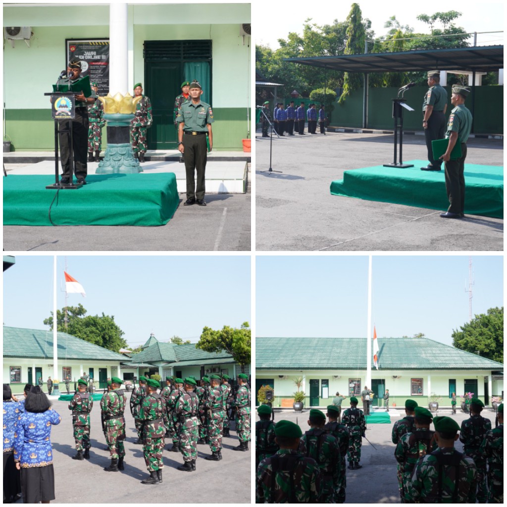 Boyolali - Kodim 0724/Boyolali menggelar upacara peringatan Hari Sumpah Pemuda ke-96 tahun 2024 bertempat di Lapangan Upacara Makodim 0724/Boyolali Jl. Padanaran Desa Tegalmulyo Kecamatan Mojosongo Kabupaten Boyolali.
