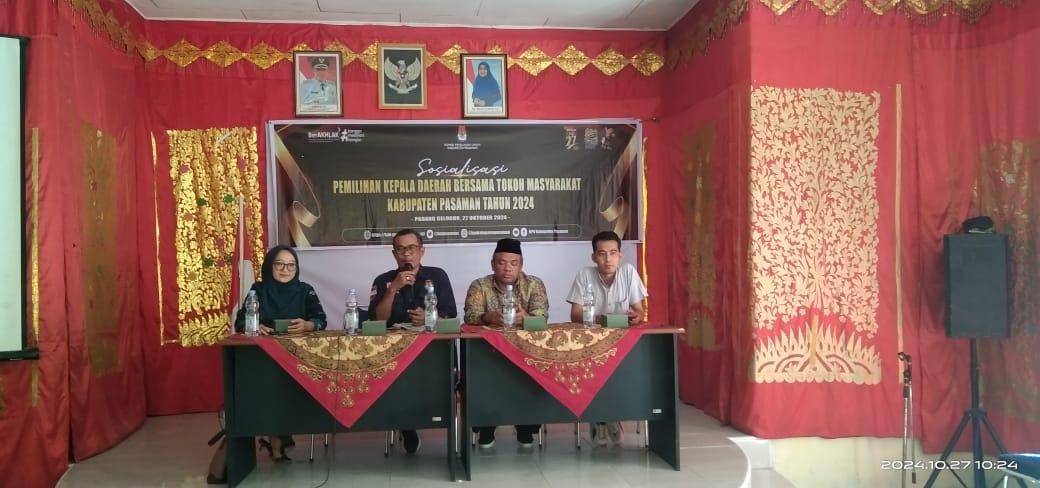 Pasaman - Komisi Pemilihan Umum (KPU) Pasaman melalui Panitia Pemilihan Kecamatan (PPK) Padang Gelugur laksanakan kegiatan sosialisasi pemilihan kepala daerah tahun 2024 dengan menggandeng tokoh masyarakat Padang Gelugur, di Aula Kantor Camat setempat, Minggu (27/10).