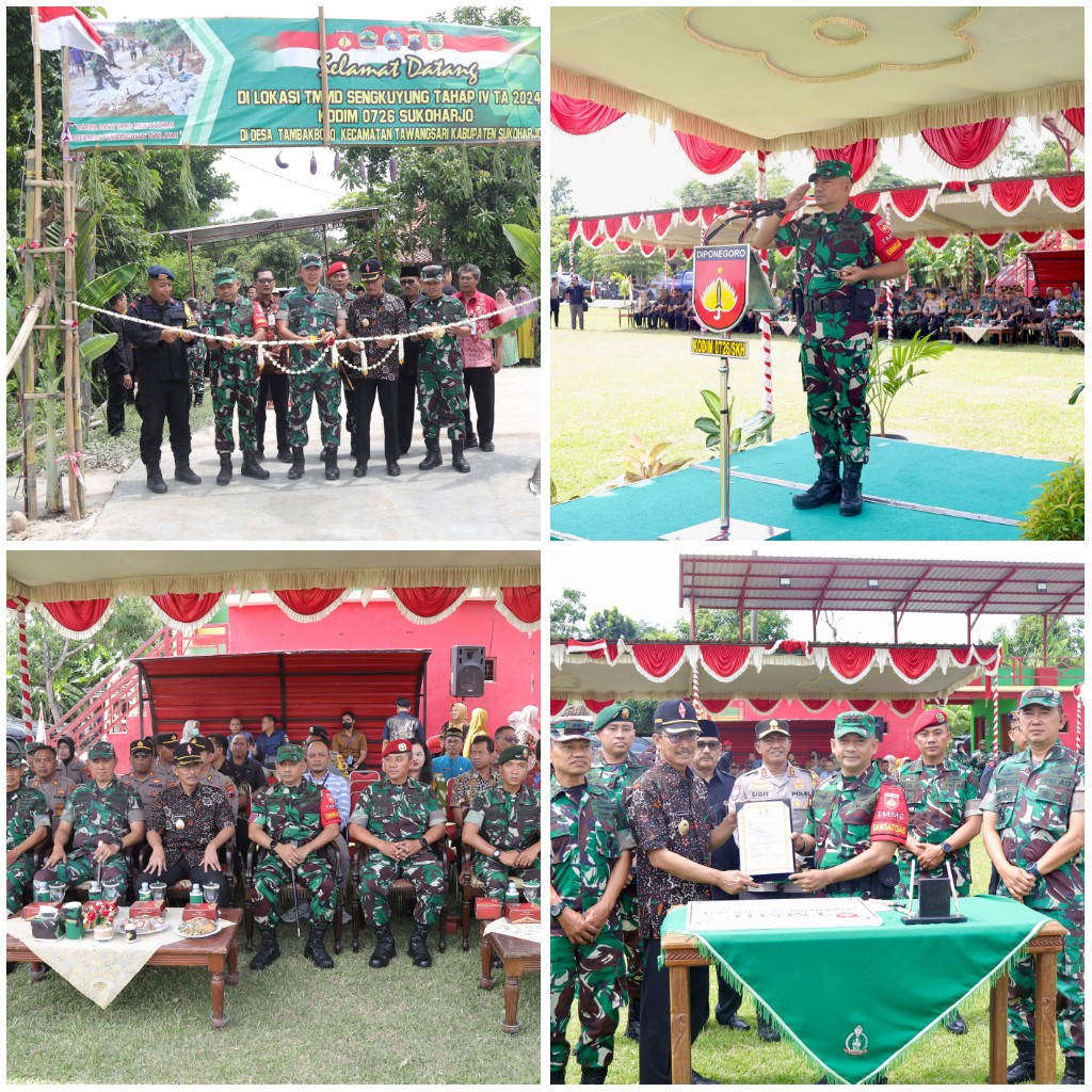 Penutupan resmi TMMD Sengkuyung Tahap IV Kodim 0726/Sukoharjo ditandai dengan penyerahan Naskah Hasil TMMD dari Dandim 0726/Sukoharjo kepada PJ. Bupati Sukoharjo Drs. H. Agus Santoso, dilanjutkan dengan penandatanganan Prasasti TMMD oleh PJ. Bupati Sukoharjo Drs. H. Agus Santoso dan Dandim 0726/Sukoharjo.