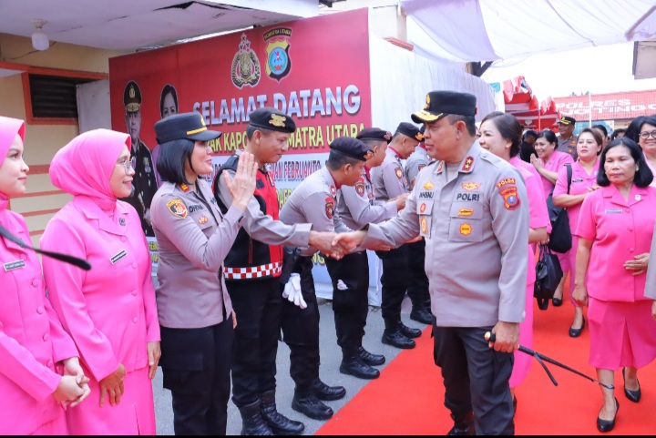 Kapolda Sumut Irjen Pol Whisnu Hermawan F., S.I.K., M.H., didampingi oleh pejabat utama Polda Sumut mengunjungi Polres Tebing Tinggi, Kamis (31/10/2024).