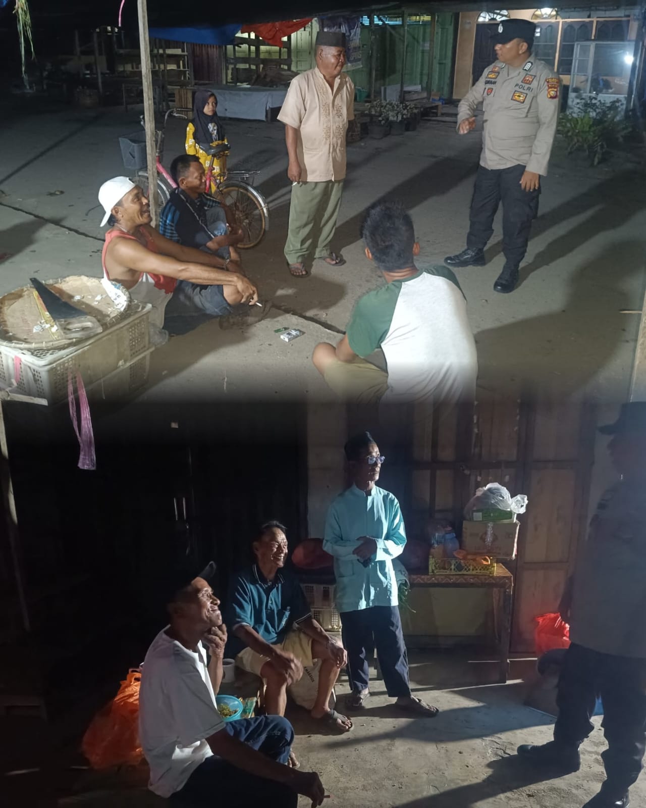Selama patroli, Personil Polsek Tempuling berinteraksi dengan warga, menjelaskan pentingnya menjaga ketertiban dan keamanan menjelang pemilihan umum.