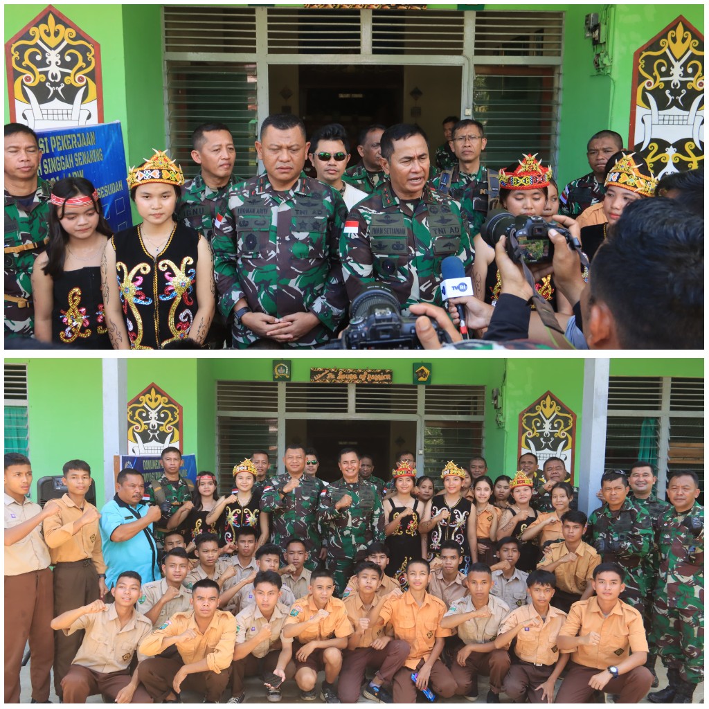 Sintang - Hari kedua Jelajah Perbatasan RI-Malaysia, selain mengunjungi Prajuritnya, Pangdam XII/Tanjungpura Mayjen TNI Iwan Setiawan, S.E., M.M., juga meresmikan Rumah Singgah dan memberikan makan bergizi gratis kepada pelajar di Desa Senaning, Kecamatan Ketungau Hulu, Kabupaten Sintang, Sabtu (2/11/2024).