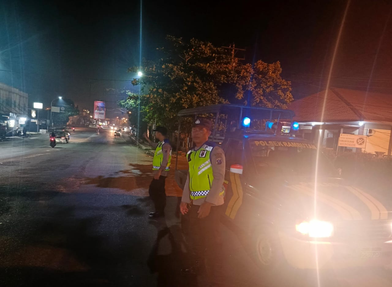 Polsek Rambutan Polres Tebing Tinggi saat menggelar Patroli Blue Light untuk mengantisipasi geng motor dan gangguan kamtibmas diwilayah hukumnya pada Kamis malam, (07/11/2024).
