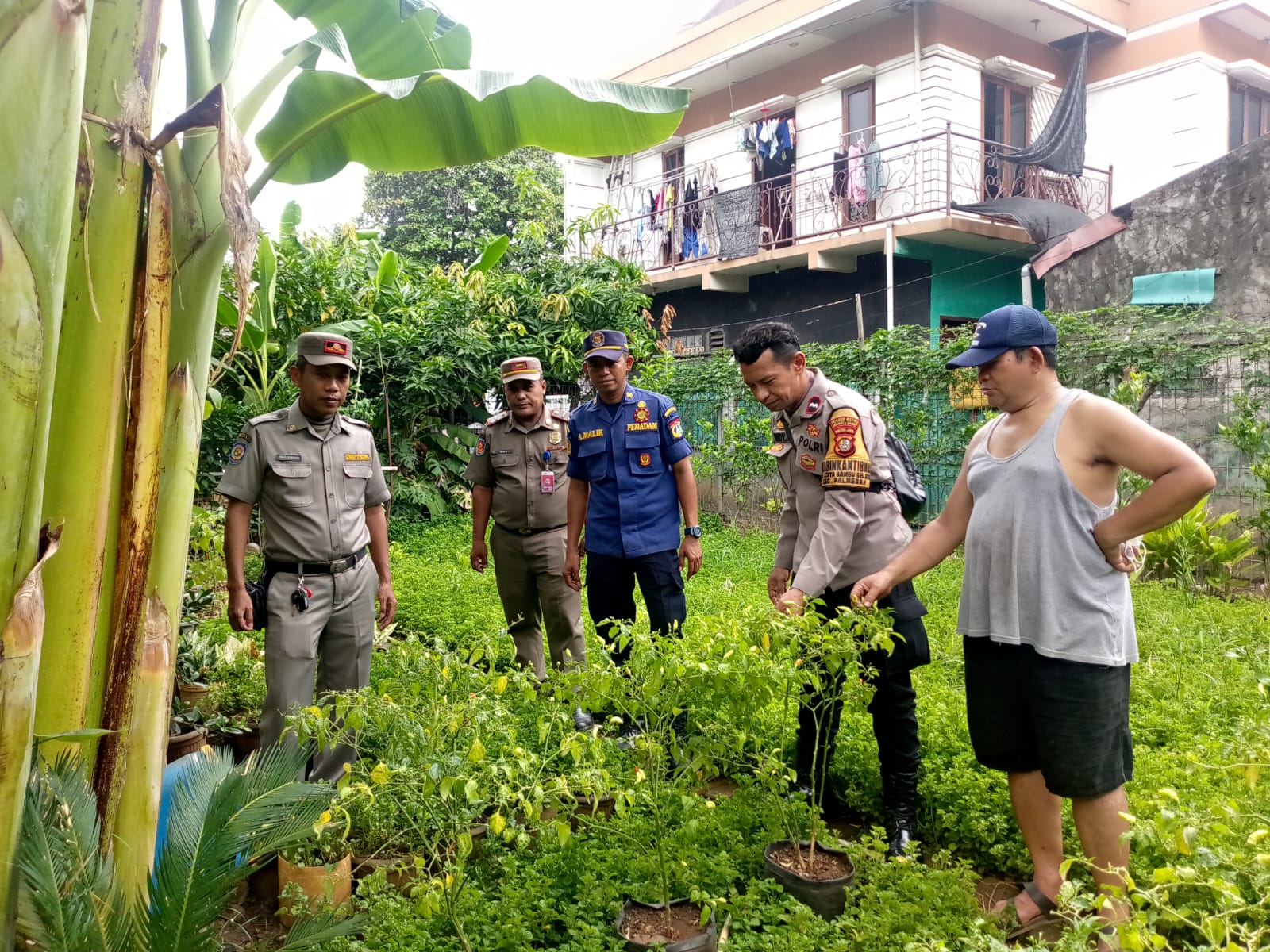 Bhabinkamtibmas Kelurahan Kota Bambu Selatan Polsek Palmerah Polres Metro Jakarta Barat, Satgas Gulkarmat Kelurahan Kota Bambu Selatan, Azhar Malik, dan Kasatpol PP, Dedi serta Agus, melakukan pengecekan lahan ketahanan pangan, Senin (11/11/2024).