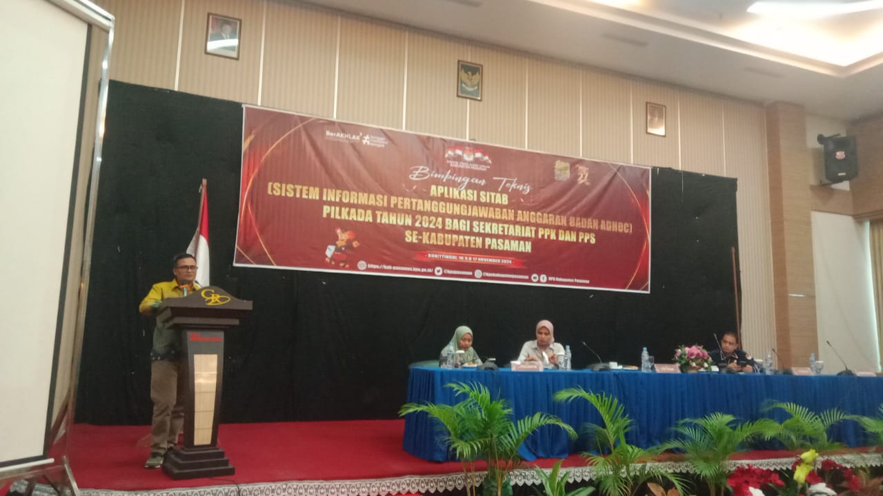 Bukittinggi - Komisi Pemilihan Umum (KPU) Kabupaten Pasaman menggelar Bimbingan Teknis Penggunaan Aplikasi Sistem Informasi Pertanggungjawaban Anggaran Badan Ad Hoc (SITAB) dalam rangka menyongsong penyelenggaraan Pemilihan Kepala Daerah (Pilkada) serentak Nasional tahun 2024.