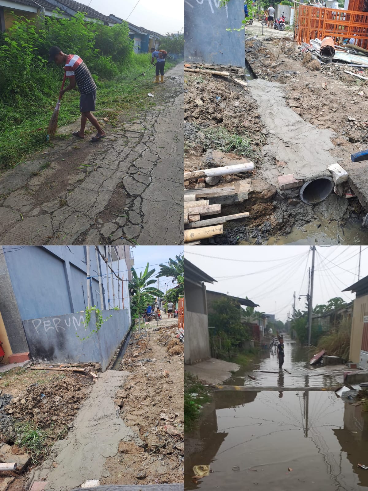 Warga Perumahan Villa Kencana Cikarang RT 001 RW011, Blok G dan Blok H, saat kerja bakti pada Minggu (17/11/24) sekira pukul 07.30 WIB.