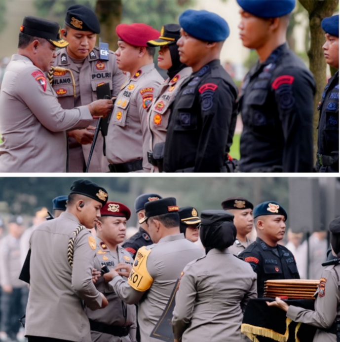 Pin Emas disematkan oleh Kapolda Sumut Irjen Whisnu Hermawan di lapangan KS. Tubun Mapolda Sumut, Senin (02/12/2024).