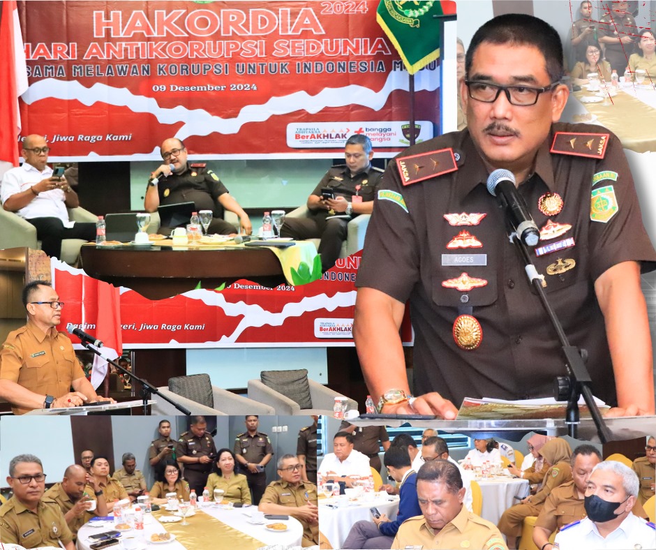 Ambon - Dalam rangka memperingati Hari Anti Korupsi Sedunia tahun 2024, Kejaksaan Tinggi Maluku melalui Bidang Tindak Pidana Khusus menyelenggarakan Diskusi Panel bersama jajaran Pemerintah Provinsi Maluku yang dibuka oleh Kepala Kejaksaan Tinggi Maluku Agoes Soenanto Prasetyo, S.H.,M.H dengan tema “Upaya pencegahan Tindak pidana Korupsi melalui perbaikan Tata kelola Organisasi Pasca Dilakukannya Penindakan”, yang bertempat di Ball Room Aru Lantai II Hotel Swiss-Bell Ambon, pada hari ini Senin (9/12/2024).