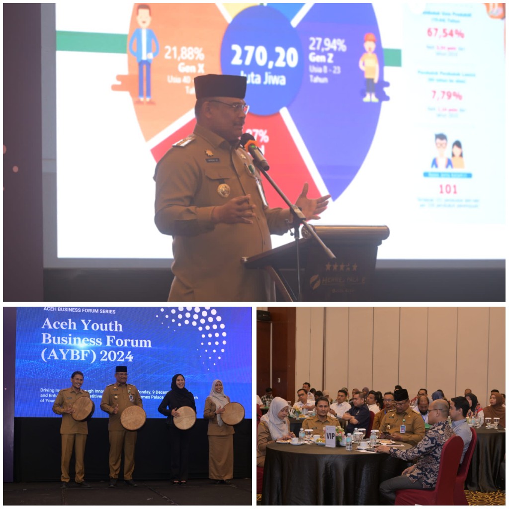 Banda Aceh - Penjabat Gubernur Aceh, Dr. H. Safrizal ZA, M.Si, menyerukan pentingnya peran generasi muda dalam menggerakkan potensi ekonomi Aceh. Hal itu disampaikan Safrizal saat memberikan materi pada Aceh Youth Business Forum 2024, acara yang diselenggarakan Dinas Penanaman Modal dan Pelayanan Terpadu Satu Pintu (DMPTSP) Aceh, Senin 9/12/2024.