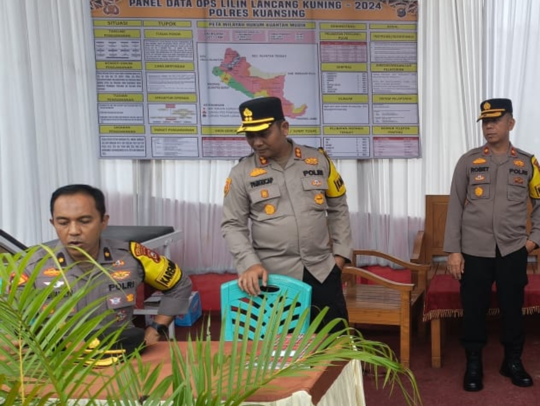 Kuansing - Dalam rangka memastikan kesiapan pengamanan perayaan Natal 2024 dan Tahun Baru 2025 (Nataru), Kapolres Kuantan Singingi (Kuansing) AKBP Pangucap Priyo Soegito, S.I.K., M.H. memimpin langsung pengecekan Pos Pengamanan Nataru yang berlokasi di Desa Kasang, Kecamatan Kuantan Mudik, pada Minggu (22/12/2024).