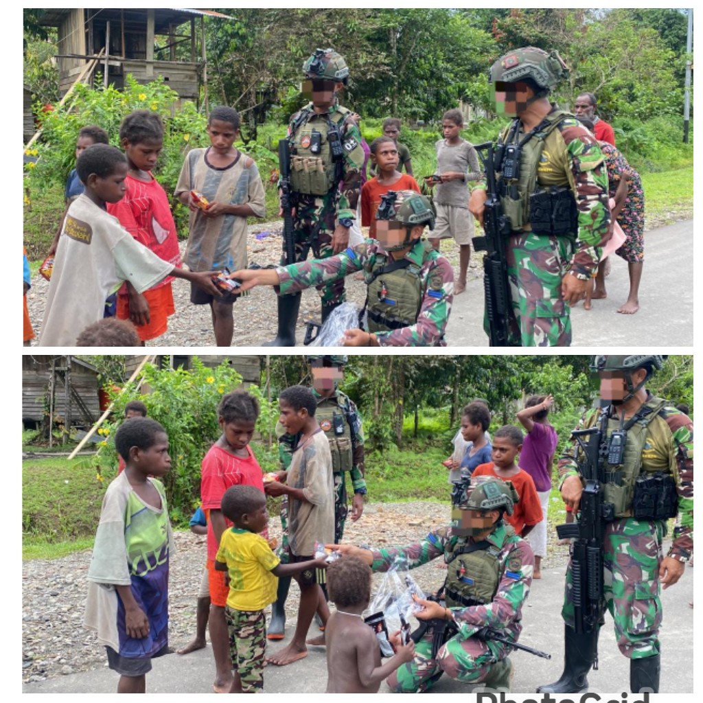 Satgas Yonif 6 Marinir, khususnya Pos Bravo pimpinan Letda Mar Alter, melaksanakan Komunikasi Sosial (Komsos) dengan anak-anak Kampung Massi, Distrik Dekai, sambil melaksanakan patroli pengamanan wilayah.