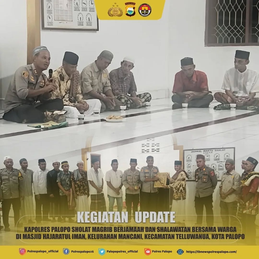 Palopo - Kapolres Palopo, AKBP Safi'i Nafsikin sholat magrib berjamaah dan shalawatan bersama warga di Masjid Hajaratul Iman, Lingkungan Batu Rante, Kelurahan Mancani, Kecamatan Telluwanua, Kota Palopo, Senin (6/1/2025).