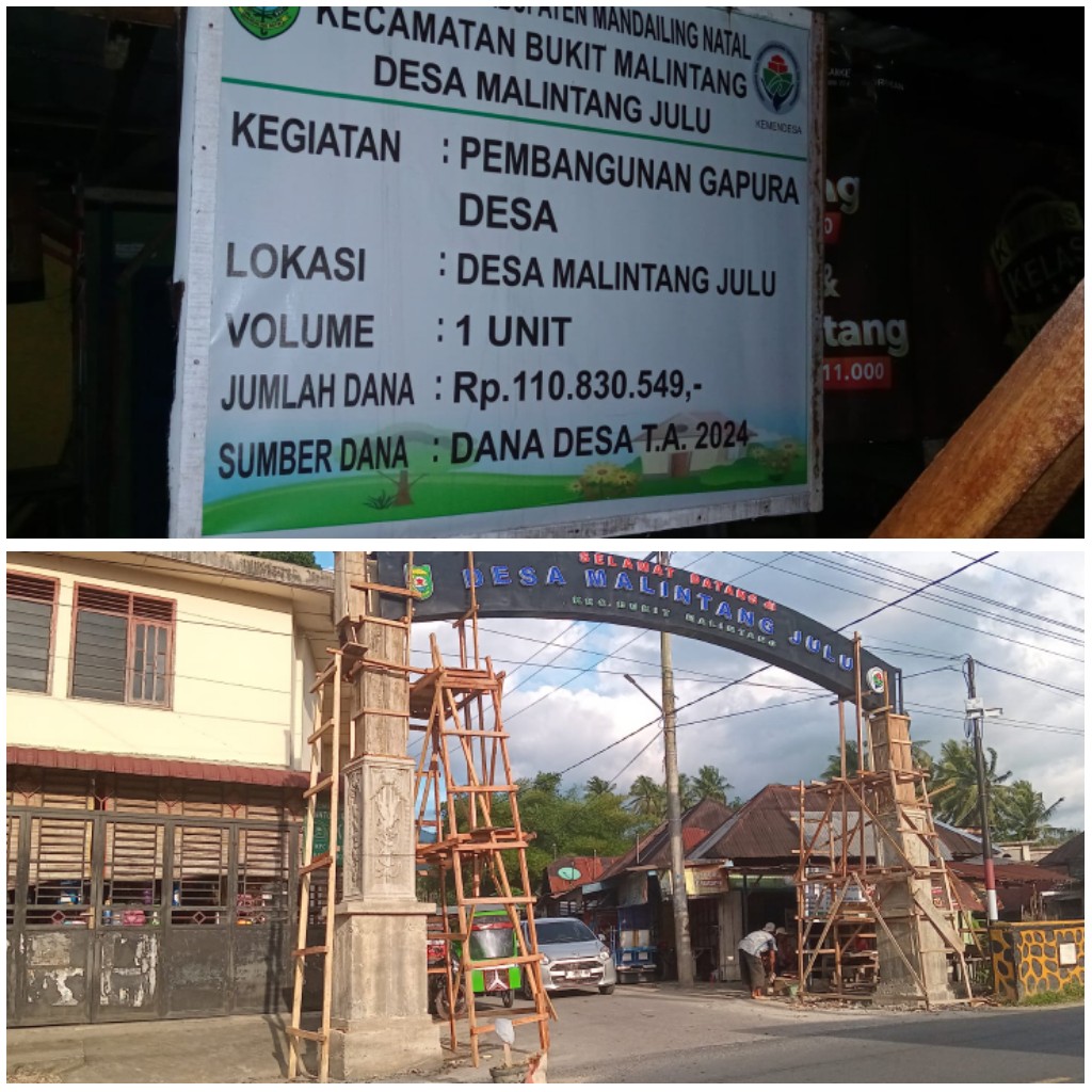 Pembangunan Gapura di Desa Malintang Julu, Kabupaten Mandailing Natal.