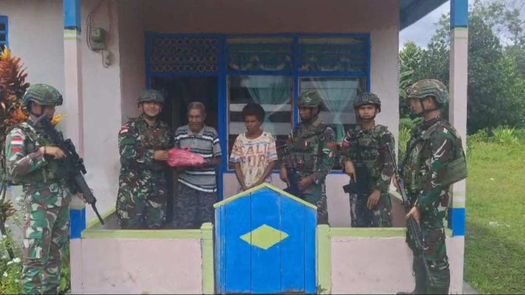 Aroba - Satgas Yonif 642/KPS Pos Aroba membagikan sembako kepada masyarakat Kp. Sanggwar, Distrik Aroba, Kabupaten Teluk Bintuni, Provinsi Papua Barat, pada Senin (3/2/2025).