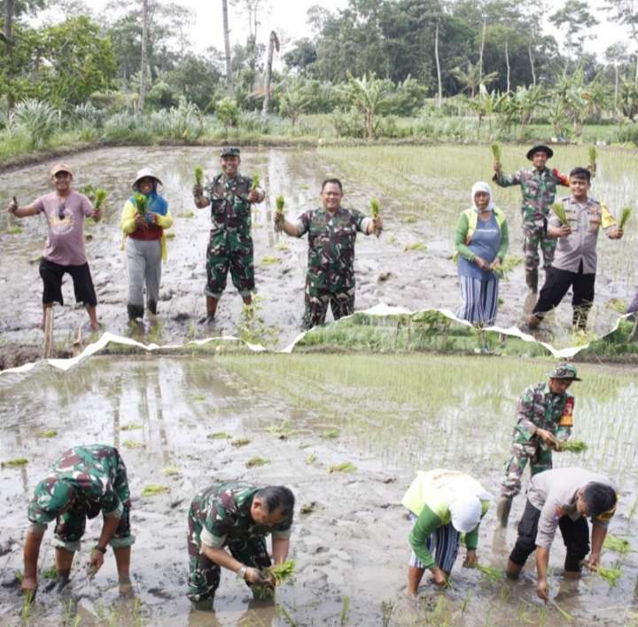 Blitar - Dalam rangka mendukung program swasembada pangan nasional, Kodim 0808/Blitar bersama Kelompok Tani (Poktan) Tunas Tani melaksanakan kegiatan penanaman padi di lahan sawah milik Bapak Puraji, anggota Poktan Tunas Tani, yang berlokasi di Desa Candirejo Kecamatan Ponggok Kabupaten Blitar, Selasa (4/2/2025).