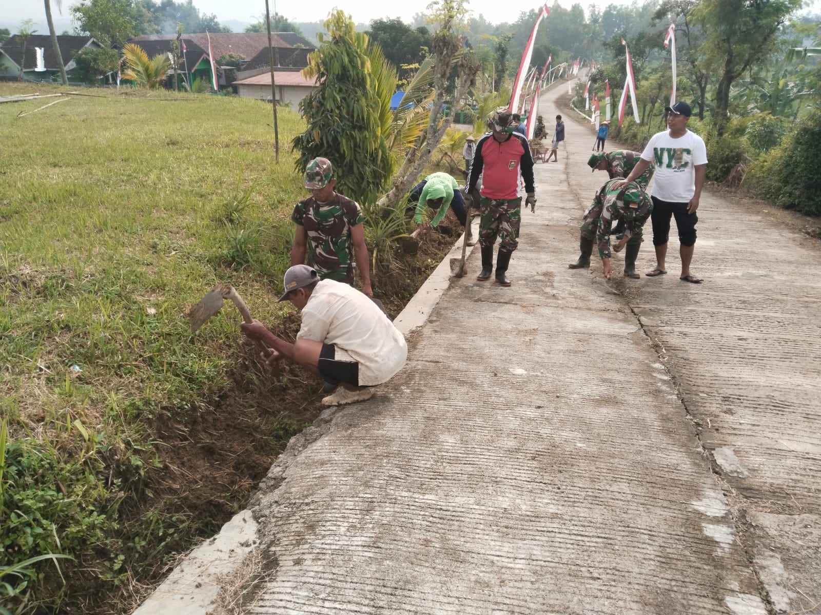 Boyolali - Sambut pelaksanaan upacara pembukaan TNI Manunggal Membangun Desa (TMMD) Reguler Ke-123 Kodim 0724/Boyolali Tahun 2025 di Desa Kalinanas, Kecamatan Wonosamudro Kabupaten Boyolali warga desa Kalinanas melaksanakan pembersihan jalan dan pemasangan umbul - umbul di sepanjang jalan menuju lapangan yang dilaksanakan upacara, pada Senin (17/02/2025).