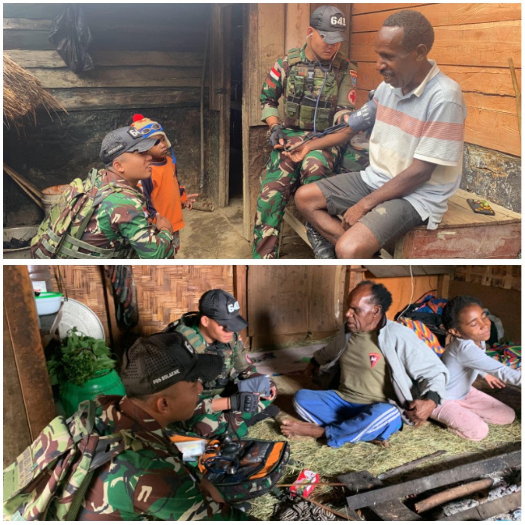 Jayawijaya - Pelayanan kesehatan dan Pengobatan adalah kegiatan rutin Pos yang dapat dilaksanakan kapan saja untuk membantu kesehatan masyarakat, seperti halnya yang dilaksanakan personel Pos Bolakme Yonif 641/Bru yang melaksanakan pelayanan kesehatan keliling untuk masyarakat Distrik Bolakme, Kabupaten Jayawijaya, Provinsi Papua Pegunungan, Sabtu (22/02/2025).
