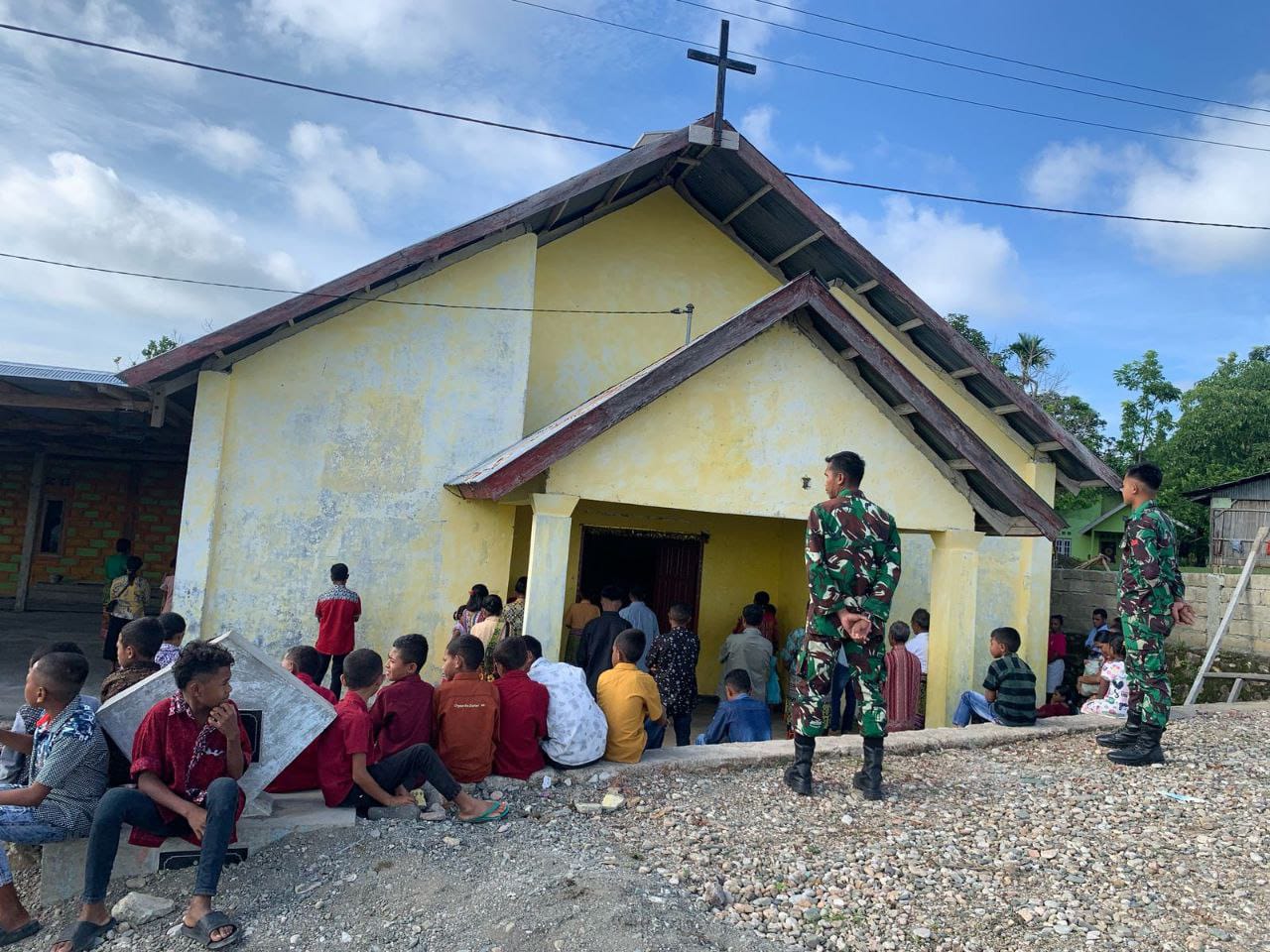 Satgas Pamtas RI-RDTL Yonarhanud 15/DBY Pos Haumeniana Amankan Ibadah di Dua Gereja